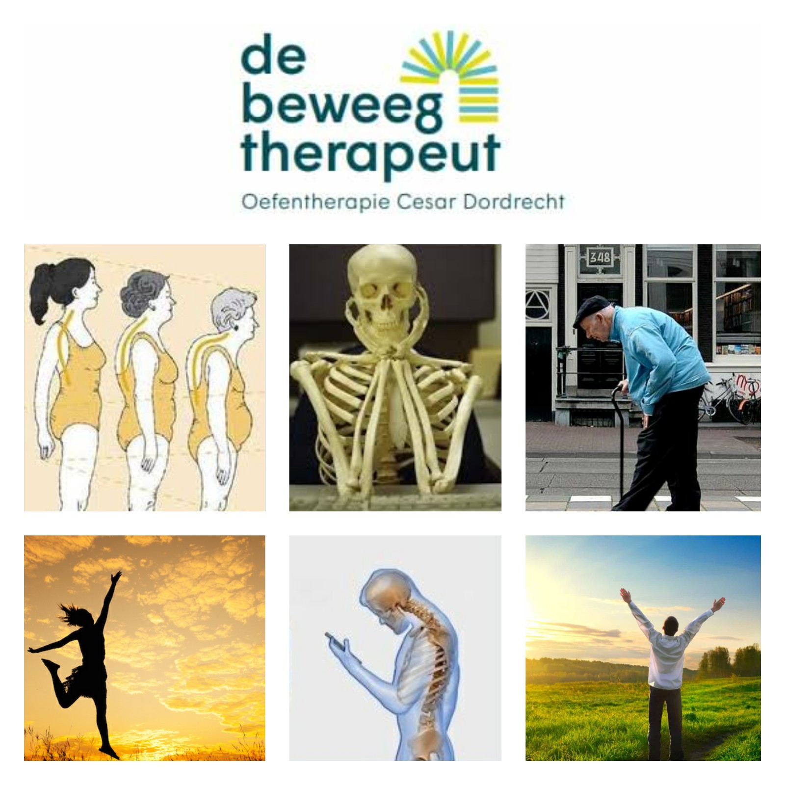 ‘Ik wil niet krom zijn’ zei de 75-jarige vrouw voor me. ‘Als ik al die oude vrouwen zo zie, dan lopen ze zo gebogen. Naast dat ik het heel lelijk vind, kan dat toch niet goed zijn?’ Ik vertel haar dat de mobiliteit afneemt van de cervicale en thoracale wervelkolom wanneer de rug zo ver gebogen is. ‘Ja dat merk ik’, geeft ze toe, ‘ik kan tijdens het autorijden eigenlijk al niet echt goed meer naar achteren kijken!’